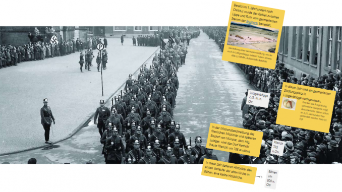 Auch wenn sie bis heute in den offiziellen Chroniken der Gemeinde so gut wie keine Erwähnung finden, haben die Jahre des Nationalsozialismus auch in Bönen stattgefunden. Von Zwangsarbeit, Verfolgung und den politischen Exzessen der dunklen Jahre setzen sich erst seit den zweitausender Jahre einige wenige engagierter Personen mit ihren Publikationen auseinander. Vorrangig sind hier die Schriften der ehemaligen Archivarin der Gemeinde Barbara Börste zu nennen.